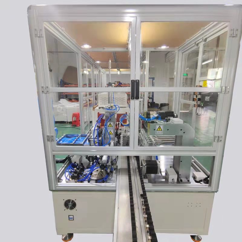 設備采用流水作業(yè)形式,臥式套膜方式,適用于大型圓柱鋁殼類電池套膜